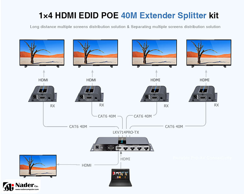 کیت اسپلیتر اکستندر 1x4 HDMI EDID POE 40M: