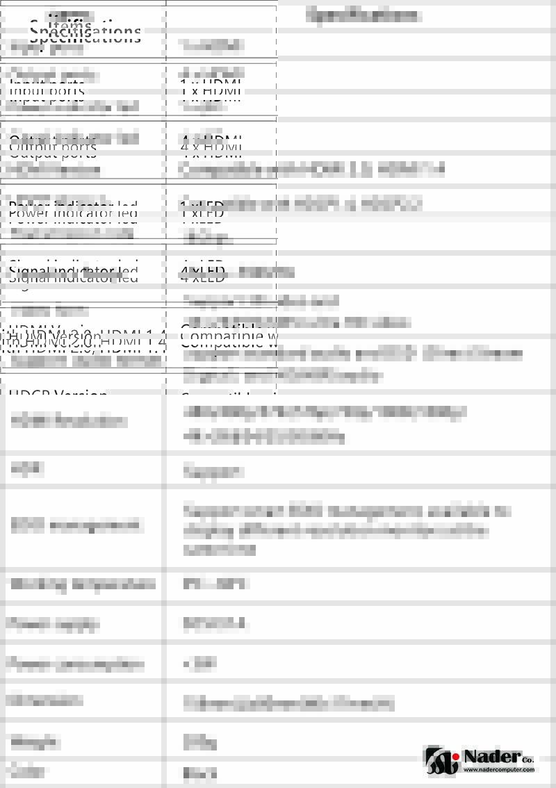 مشخصات کلی اسپلیتر 1 به 4 HDMI لنکنگ مدل LENKENG LKV314HDR-V2.0: