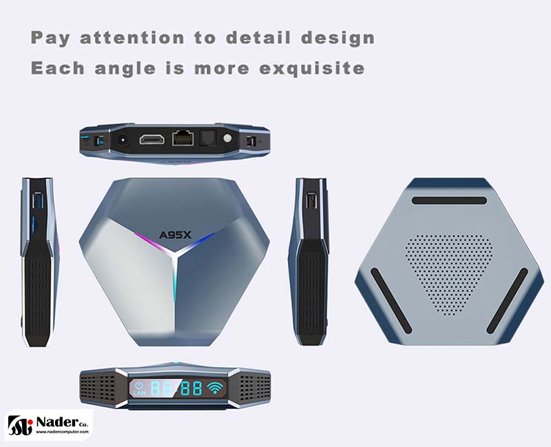اندروید باکس A95X F4 مدل 4/128  به اندروید اجازه می دهد تا به آرامی حرکت کند، برای مثال سخت افزاری بسیار برتر از Xiaomi Mi Box. این تی وی باکس دارای سیستم عامل اندروید 11، دارای ریموت کنترل و ال ای دی های رنگی پر زرق و برق می باشد. این سخت افزار همانطور که می گوییم برای سیستم های استریم پولی در نظر گرفته نشده است، اما آزادی بسیار بیشتری برای نصب و مدیریت برنامه های مختلف برای شما دارد.