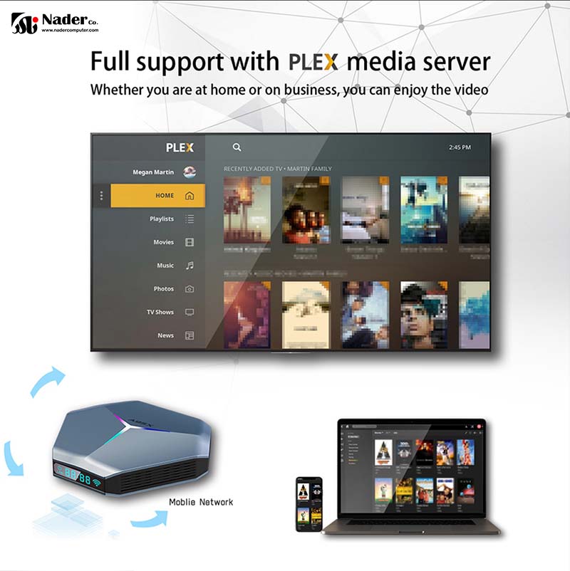 استفاده از پلیرهایی مانند KODI یا PLEX بدون کوچکترین مشکلی با نصب مستقیم از فروشگاه اندروید تی وی امکان پذیر است. از نظر صدا می توانید DD 7.1 و DTS را تا 5.1 از طریق پورت HDMI، 5.1 از طریق SPDIF و استریو از طریق جک AV پخش کنید.