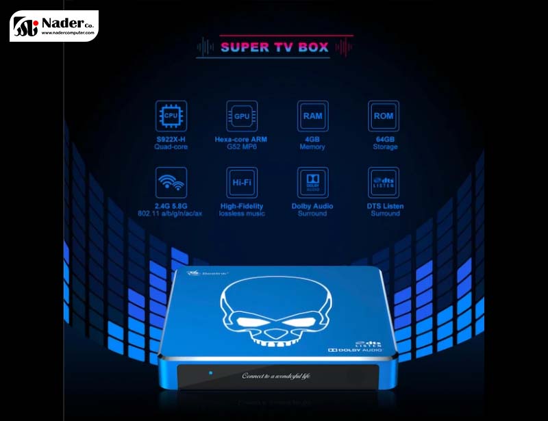 اندروید باکس Beelink GT-King Pro دارای ویژگی های DTS listen + Dolby Audio است که کیفیت صدای Hi-Fi را برای تجربه همه جانبه به شما ارائه می دهد. Amlogic S922X-H CPU Hexa-core ARM G52 MP6 GPU با پردازنده گرافیکی CPU با کارایی بالا، اندروید باکس Beelink مدل GT-King Pro WIFI6 را سریع و روان اجرا می کند، هرگز نگران بافر شدن و داغ شدن بیش از حد در حین تماشای فیلم یا بازی کردن نباشید.