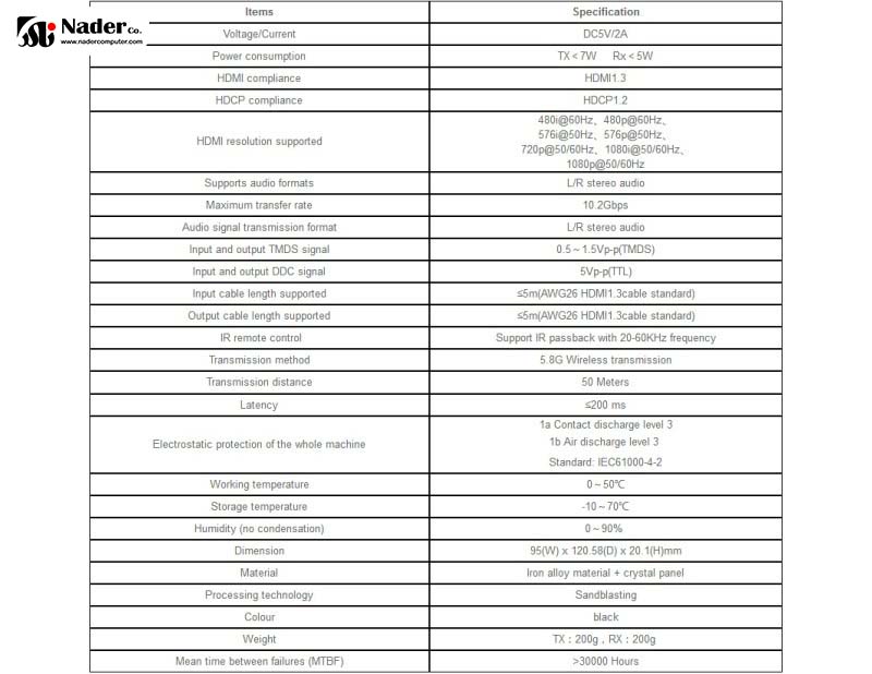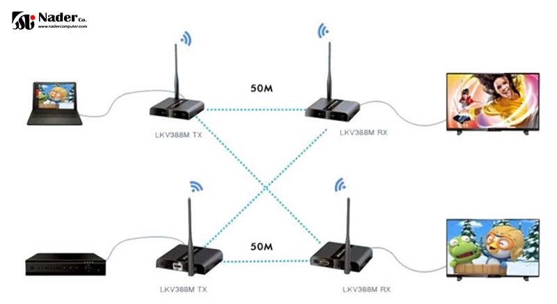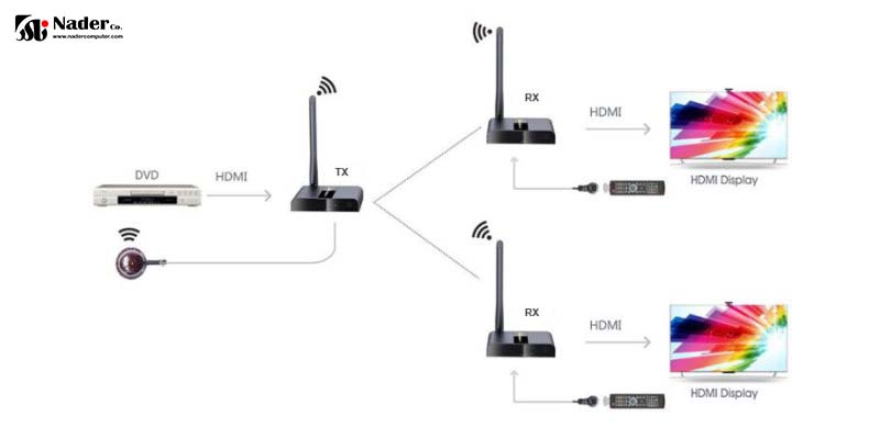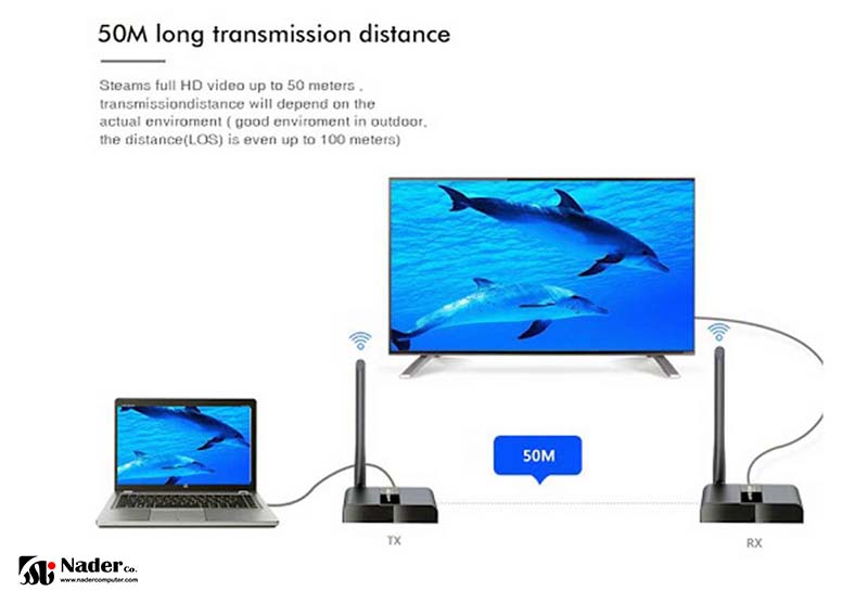 - سیگنال HDMI جریان بی سیم برد بلند و فاصله انتقال با برد 50 متر