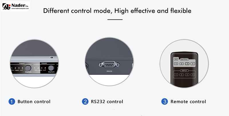 1. دکمه ها: کنترل لوکال برای سوییچ کردن و توزیع سیگنال؛ بصورت مستقیم و سریع