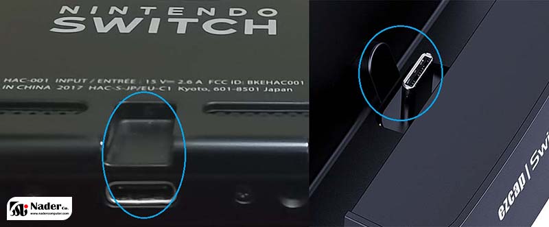 - پورت HDMI OUT را با کابل HDMI به تلویزیون وصل کنید، NS خود را به Type-C male متصل کنید