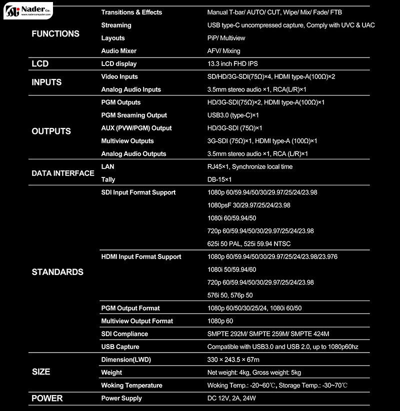 - یک خروجی HDMI و دو خروجی SDI PGM