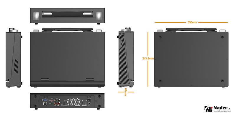 در یک طراحی قابل حمل یکپارچه، AVMATRIX PVS0613U در یک محفظه فلزی مستحکم قرار گرفته است و دارای صفحه نمایش 13.3 اینچی Full HD IPS و کنترل های سوئیچینگ آشنا از جمله T-bar است. PVW و PGM با صدا سنج (audio meter) ، ساعت و فهرست منو نیز در گوشه پایین سمت راست نمایش داده می شود.