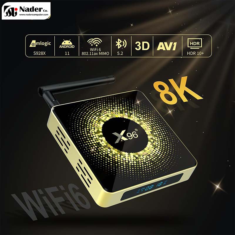 اندروید باکس Android Box X96 X10 8/64 مجهز به پردازنده Penta Core Amlogic S928X-J می‌باشد که دارای قدرت محاسباتی قدرتمند و قابلیت پردازش گرافیکی برای اطمینان از تجربه عملکرد سریع و روان است.