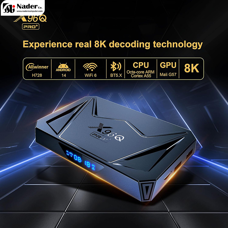 X96Q PRO PLUS یک اندروید باکس جدید است که شامل SoC Allwinner H728 تراشهای ارزان قیمت است که نسبت به قیمت خود عملکرد مناسبی دارد. اندروید باکس 4/64 Android Box X96Q PRO Plus دستگاهی است که در پیکربندیهای مختلف با قیمت مقرون به صرفه ارائه میشود و برای برنامههایی مانند KODI یا IPTV مناسب است. اندروید باکس 4/64 Android Box X96Q PRO Plus دارای طراحی کلاسیک است، که طرفین آن 3 پورت USB 2.0 (درگاه آبی USB 3.0 نیست)،یک پورت HDMI 2.0 که تا رزولوشن 4K@60fps پشتیبانی میکند، پورت اترنت/ Ethernet، دکمه خاموش کردن و یک micro SD card reader وجود دارد. همچنین در قسمت جلویی اندروید باکس 4/64 Android Box X96Q PRO Plus یک صفحه نمایش LED کوچک است که به ما زمان میدهد و نمیتوان آن را خاموش کرد.