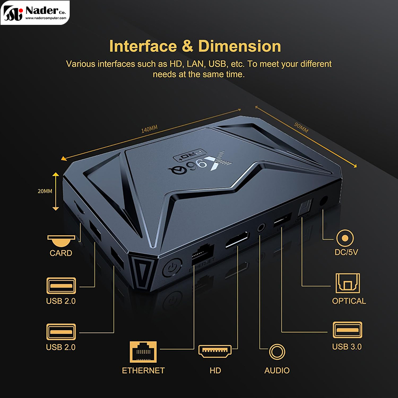 اندروید باکس Android Box X96Q PRO Plus 4/64 دارای ظرفیت ذخیره سازی 64 گیگابایت است؛ همچنین میتوانید اضافه کردن یک TF card یا USB hard drive به اندروید باکس فیلم یا تصاویر را مشاهده کنید . اندروید باکس Android Box X96Q PRO Plus 4/64 دارای تراشه Wifi 6 با بلوتوث 5.0 برای اتصال بیسیم و آنتن داخلی وای فای است. اندروید باکس Android Box X96Q PRO Plus 4/64 دارای سیستم خنک کننده و همانطور که خواهید دید، دما را بدون هیچ مشکلی حفظ میکند.
