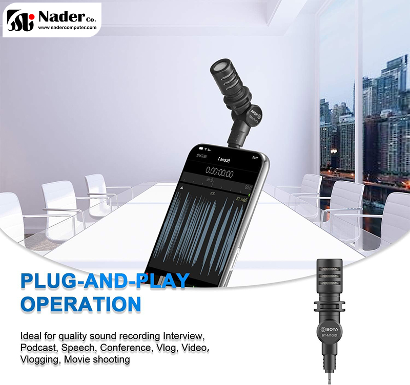 BOYA BY-M100D یک میکروفون مینیاتوری plug and play است که برای Vlog، محتوای ویدیویی موبایل و ارتقای کیفیت ضبط صدا در دستگاههای iOS شما ایدهآل است. استفاده ساده از میکروفون بویا BOYA BY-M100D برای مثال یک وبلاگ نویس تازه کار ایده آل است. اندازه کوچک میکروفون بویا BOYA BY-M100D این امکان را به شما میدهد تا به راحتی آن را به هر مکانی ببرید. میکروفون بویا BOYA BY-M100D را میتوان در خارج از منزل نیز استفاده کرد، زیرا دارای محافظ windscreen برای کاهش صدای باد است.