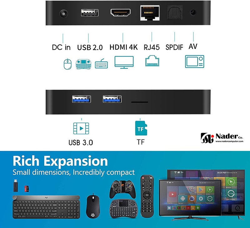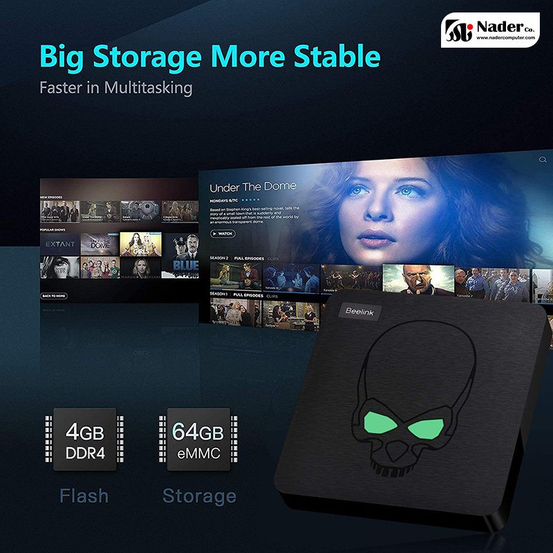 RAM RAM 4G + 64G EMMC Flash. این مدل اندروید باکس Beelink دارای عملکرد سریع و پایدار پشتیبانی میباشد ، حافظه داخلی 64 گیگابایتی فضای آزاد زیادی برای نصب برنامه ها به شما خواهد داد، بدون اینکه همیشه نگران کمبود فضای خود باشید.