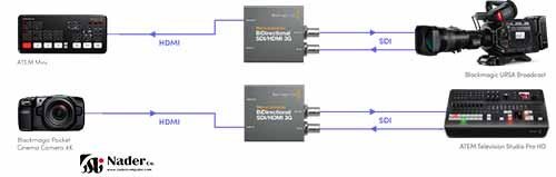 کانورتر بلک مجیک Bidirectional SDI HDMI 3G کوچکترین مبدل کیفیت پخش دو طرفه جهان بوده و این قابلیت را دارد که SDI را به HDMI و همزمان HDMI را به SDI حتی در قالب های مختلف تبدیل کند! به علاوه از تبدیل پروتکل کنترل دوربین پشتیبانی می کند ، بنابراین می توانید از دوربین های سینمایی Blackmagic Pocket Cinema با سوئیچ های حرفه ای تولید مستقیم SDI استفاده کنید!