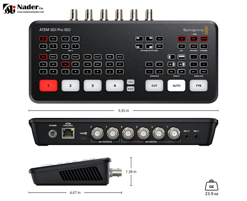 مشخصات کلی میکسر بلک مجیک Blackmagic ATEM SDI Pro ISO: