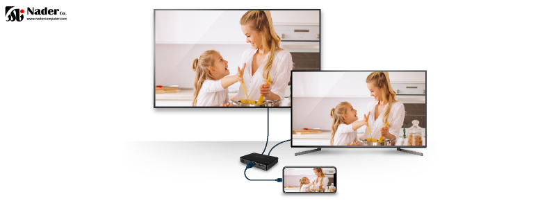 وجود دو خروجی HDMI و VGA در این دانگل باعث میشود که دیگر برای دستگاه های جدید و قدیمی نیازی به مبدل نداشته باشید و از هزینه های اضافه و شلوغی بیش از حد دستگاه ها جلوگیری خواهد شد. جالب است بدانید خروجی های HDMI و VGA قابلیت دو خروجی تصویر همزمان در دو صفحه نمایش متفاوت را در دسترس شما قرار میدهد. با این قابلیت دیگر نیازی به اسپلیتر نخواهید داشت.