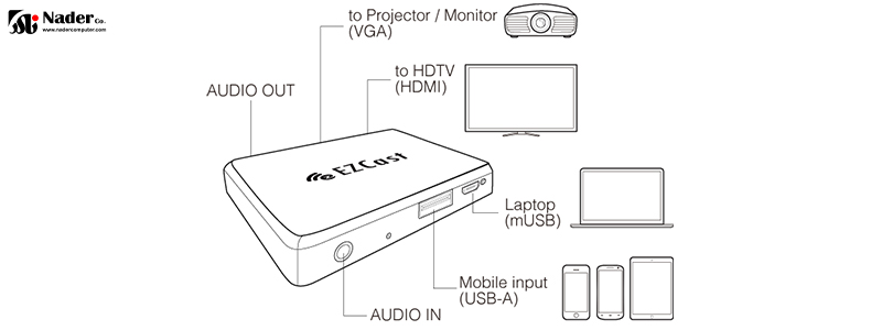 دانگل انتقال تصویر EZCast Duo از دیگر محصولات جدید EZCast است که توسط فروشگاه نادرکامپیوتر، تنها نماینده رسمی فروش Ezcast در ایران، ارائه میگردد. EZCast Duo یک دانگل انتقال تصویر کابلی است که به شما امکان تبدیل USB به HDMI و VGA را میدهد. برای استفاده از دانگل انتقال تصویر ایزدکست EZCast Duo به نرم افزار EZCast نیاز خواهید داشت. این نرم افزار از چند سیستم عامل از جمله ویندوز، macOS، اندروید و iOS پشتیبانی می‌کند و بصورت ماهیانه آپدیت خواهد شد. این دانگل از Windows و لپ ‌تاپ‌های MacOS و همچنین موبایل/ تبلت‌های Android و iOS برای ارسال بدون تأخیر پشتیبانی میکنید.