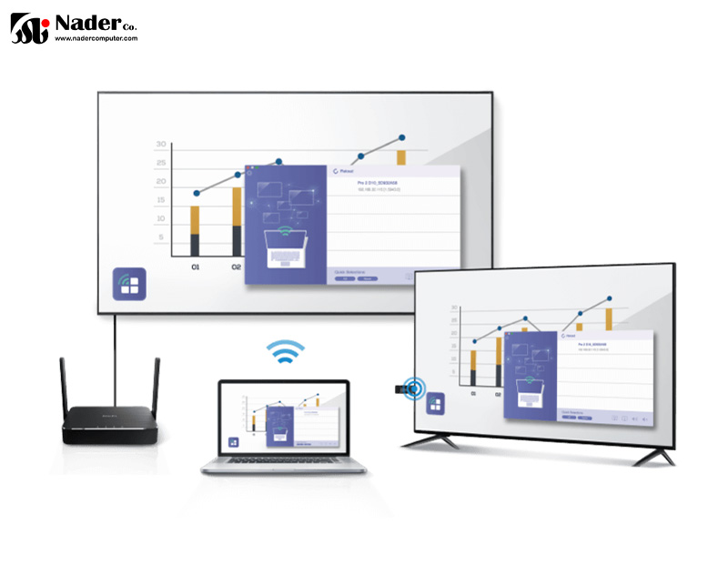 - قابلیت اتصال حداکثر 4 منبع نمایش در حالت split-screen به صورت همزمان به دانگل