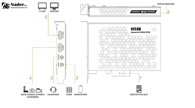 نحوه اتصال کارت کپچر اینترنال ایزدکپ Ezcap 380 GameLink RAW PCIE: