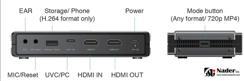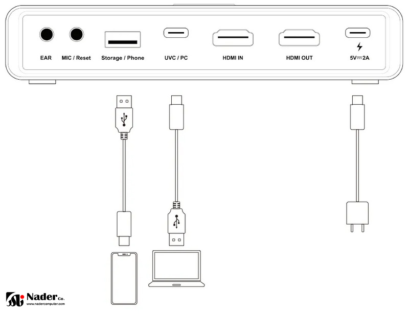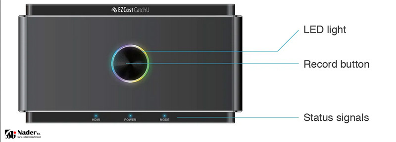 کپچر Ezcast CatchU B1 دارای ظاهری جذاب بوده و دکمه RGB آن هر گیمر و استریمر حرفهای را جذب خود میکند. اتصالات رکوردر و کارت کپچر Ezcast CatchU B1 شامل: