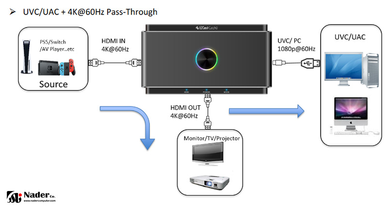 - اتصال کارت کپچر ایزد کست CatchU B1 تنها با اتصال کابل USB به وسیله پورت UVC / PC به رایانه یا لپتاپ