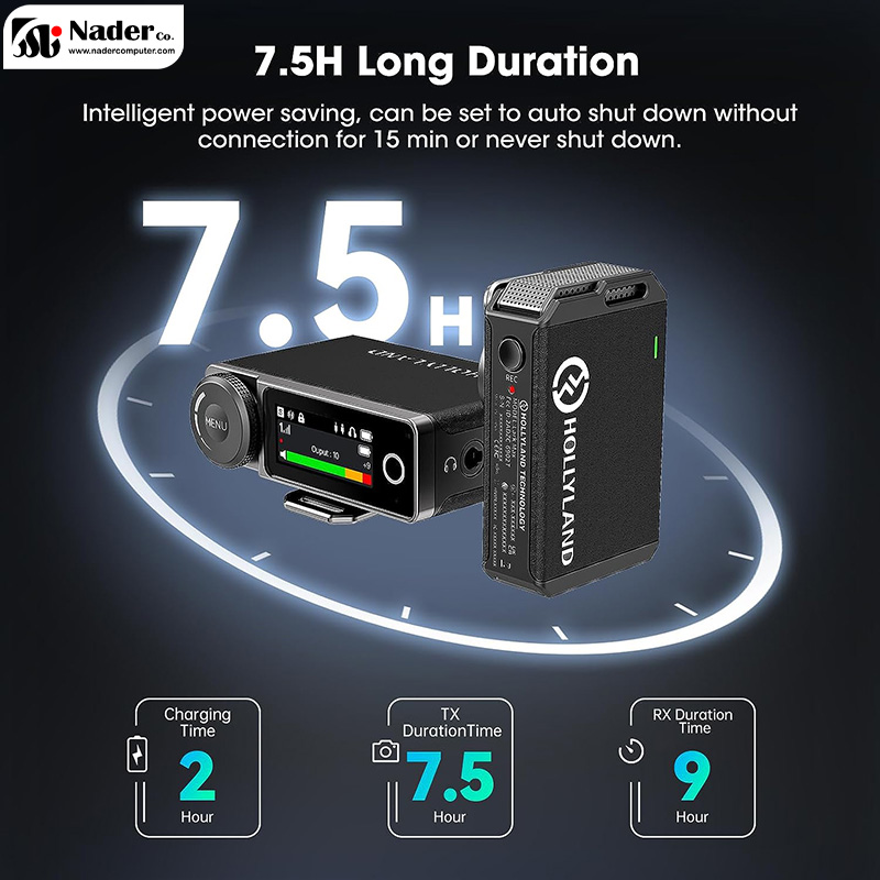 فرستنده میکروفون بیسیم هالی لند Hollyland Lark Max Solo به تنهایی 7.5 ساعت کار میکند، در حالی که گیرنده 9 ساعت کار میکند و میتواند به طور همزمان شارژ و کار کند. سیستم خود را با یک کیس شارژ جمع و جور که به طور جداگانه در دسترس است، گسترش دهید درنتیجه میتوانید زمان اجرای فرستنده و گیرنده را افزایش دهید. همچنین Hollyland Lark Max Solo تا 22 ساعت با شارژ کامل در کیس شارژ امکان استفاده را ایجاد میکند.
