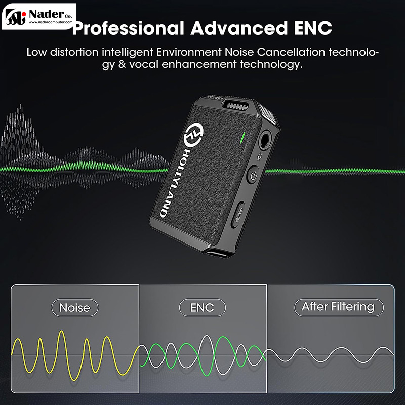 میکروفون بیسیم هالی لند Hollyland Lark Max Solo از فناوری پیشرفته ENC (Environment Noise Cancellation) برای شناسایی و به حداقل رساندن نویز اطراف استفاده میکند و تضمین میکند که کیفیت صدا حتی در محیطهای ضبط، شفاف و بدون نویز باقی میماند. میکروفون بیسیم هالی لند Hollyland Lark Max Solo کاربر پسند است و به شما امکان میدهد به راحتی حالت ENC را از طریق فرستنده یا گیرنده روشن یا خاموش کنید.