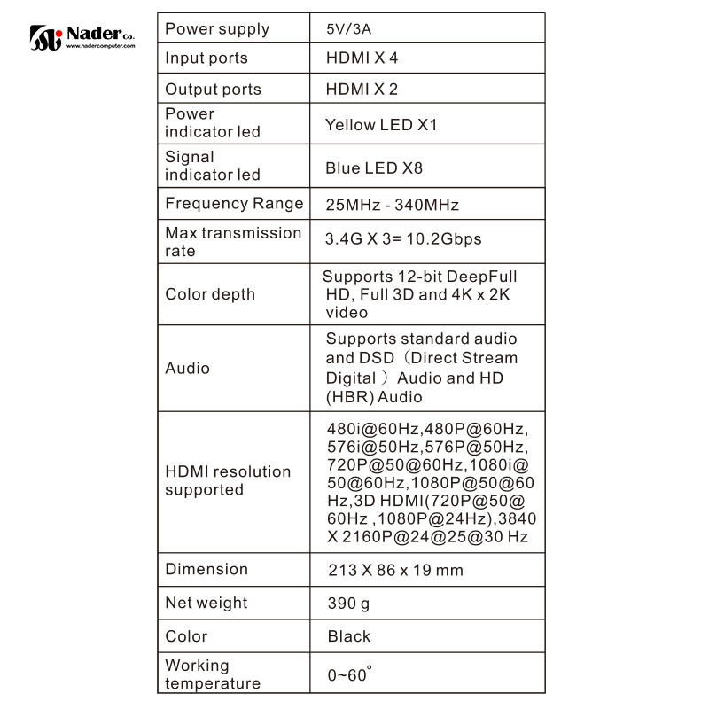مشخصات کلی سوئیچ ماتریکس 4 در 2 HDMI لنکنگ مدل LKV342PRO: