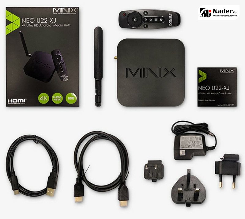 • اقلام همراه: اندروید باکس مینیکس NEO U22 XJ / ریموت کنترل/ کابل HDMI/ آداپتور، دفترچه راهنما