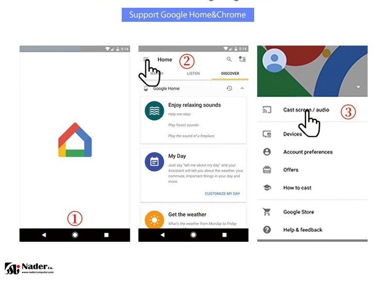 - پشتیبانی از Google Home (Android) و مرورگر Chrome (PC) Screen Mirroring.