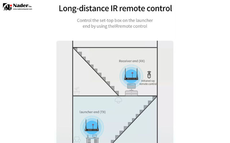 ویژگی داخلی سیگنال IR در اکستندر بیسیم میرااسکرین MiraScreen R15 Extender به شما امکان میدهد دستگاه پخش را از راه دور کنترل کنید. تصور کنید یک دستگاه پخش DVD در اتاق رسانه خود و یک تلویزیون در اتاق نشیمن خود دارید، در حالی که در اتاق نشیمن هستید، همچنان میتوانید از ریموت DVD خود برای کنترل پخش کننده DVD با عملکرد IR CONTROL EXTENSION استفاده کنید.