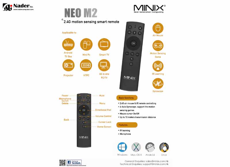 مشخصات کلی ریموت کنترل مینیکس نئو MINIX NEO M2: