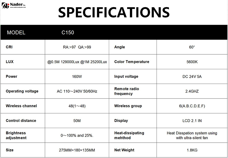 رتبه بندی CRI 97+ و TLCI 99+ باعث می شود رنگ طبیعی و معتبر باشد. عملکرد دمای رنگ 5600k با خورشید مطابقت دارد و به صورت یکپارچه به عنوان نور سفید ترکیب می شود تا اشیا طبیعی تر به نظر برسند. نور ثابت ال ای دی پیکسل مدل PIXEL COB Video Light C150 دارای توان خروجی مداوم 140 وات و روشنایی بالا COB LED Beads است که با عملکرد رندر رنگ بالا CRI97+، TLCI99+ و روشنایی بالا باعث میشود رنگهای واقعی را بازیابی کنید و بهترین ها را تجربه کنید. نور ثابت ال ای دی پیکسل COB Video Light C150، برای عکاسی حرفه ای مانند پرتره، فیلم سازی استودیویی، مصاحبه، ضبط ویدیو و غیره طراحی شده و بسیار حرفه ای عمل میکند و تصویری فوق العاده ارائه خواهد داد.