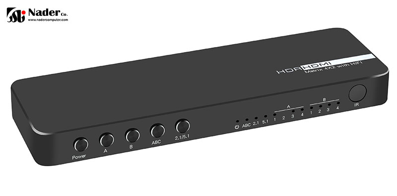 ماتریکس 4 در 2 HDMI ویکینگ مدل V-King VK-C4 Matrix میتواند چهار منبع HD را با دو صفحه نمایش HD متصل کند، و همچنین میتواند خروجی صدای اضافی را توسط پورت SPDIF یا پورت هدفون انجام دهد. VK-C4 18G HDMI 2.0 4X 2 Matrix میتواند چهار منبع HD را به راحتی روی دو صفحه نمایش HD سوییچ یا توزیع کند. ماتریکس 4 در 2 HDMI ویکینگ مدل V-King VK-C4 Matrix همچنین میتواند از عملکرد ARC پشتیبانی کند، که میتواند صدای تلویزیون را به تقویتکننده ارتقا دهد. فروشگاه آنلاین نادرکامپیوتر دارای نمایندگی انحصاری فروش محصولات V-King در ایران، ماتریکس 4 در 2 HDMI ویکینگ مدل V-King VK-C4 Matrix را به شما ارائه میدهد. در ادامه بیشتر با قابلیتهای ماتریکس 4 در 2 HDMI ویکینگ مدل V-King VK-C4 Matrix آشنا خواهید شد.