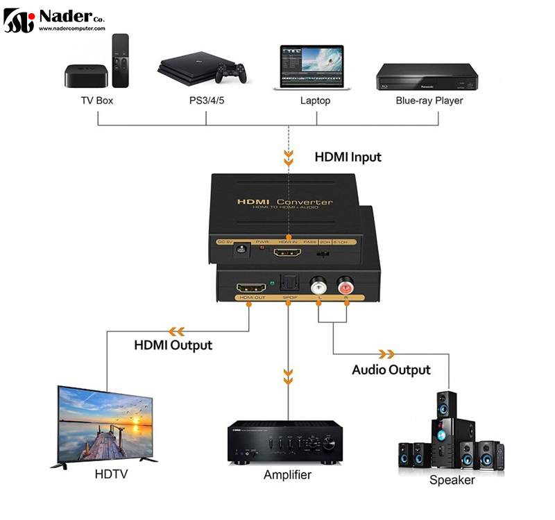 - تبدیل یک ورودی HDMI به یک خروجی HDMI+ Audio (SPDIF+R/L)