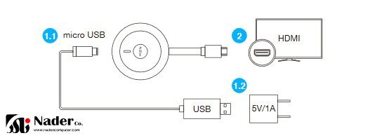 - کابل micro USB را به دانگل EZCast متصل کرده و با اتصال کابل USB به آداپتور (5V / 1A) آن را روشن کنید.