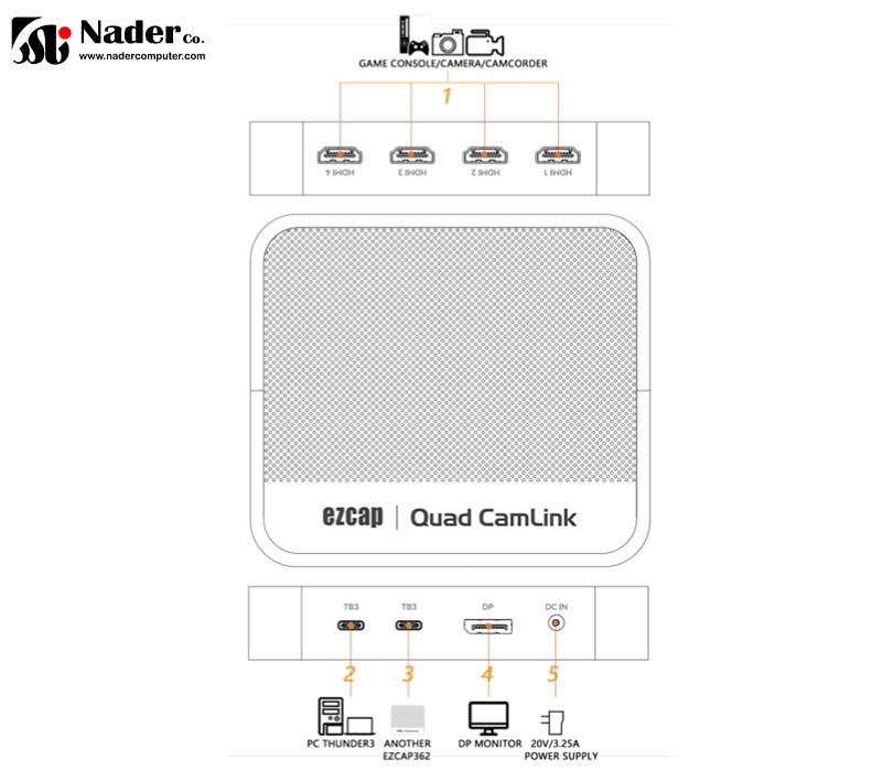 1) کارت کپچر ایزدکپ ezcap 362 Quad CamLink از پورت USB 2.0، 3.0، 3.1 یا 3.2 پشتیبانی نمی کند، فقط پورت Thunderbolt 3 را پشتیبانی میکند.