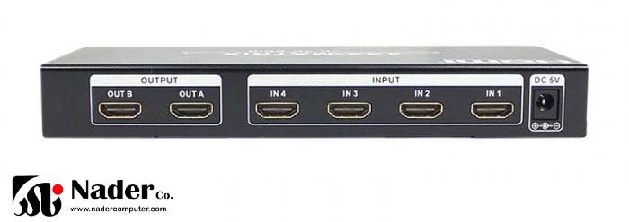 - پورت ورودی / خروجی: HDMI x 4 (in) ، DC in ، HDMI x 2 (out) امکان توزیع همزمان 4 منبع HDMI تا حداکثر 2 نمایشگر را فراهم می کند.