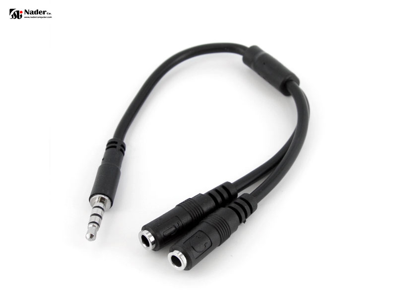 اگرچه از نظر ظاهری شبیه به هم هستند، اما آداپتورهایی مانند اسپلیتری که در تصویر مشاهده میکنید، بسیار متفاوت از اسپلیتر ساده تصویر بالا هستند. آنها یک پورت صوتی را روی دستگاه منبع که شامل یک میکروفون (3.5 میلیمتری TRS 4) میشود، به دو درگاه مجزا تبدیل میکنند: یک جک هدفون 3.5 میلیمتری و یک درگاه میکروفون 3.5 میلیمتری. این اسپلیتر معمولاً برای اتصال یک هدست با دو شاخه TRS به رایانه یا دستگاه تلفن همراه استفاده می شود.