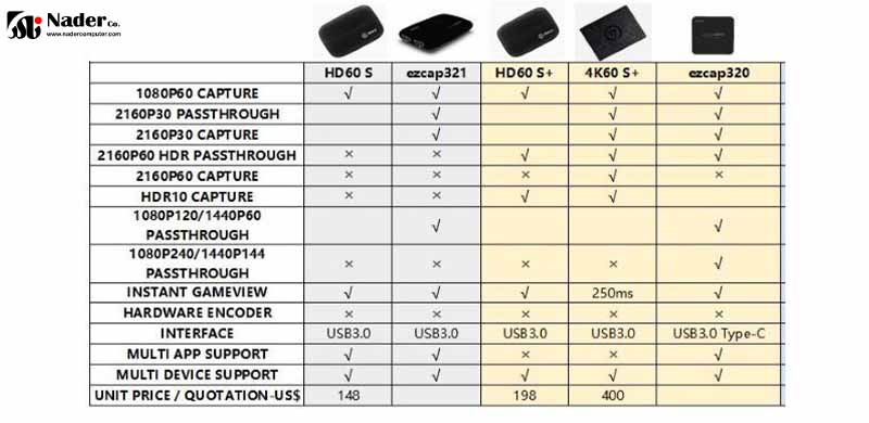 در پایان، ما محصولات کارت کپچرهای ویدیو با قابلیت پخش استریم را با هم مقایسه میکنیم.